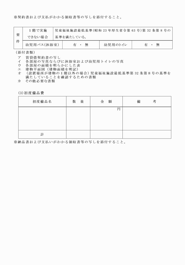 初度備品費 | 1箇所あたり 200,000円以内 | |||