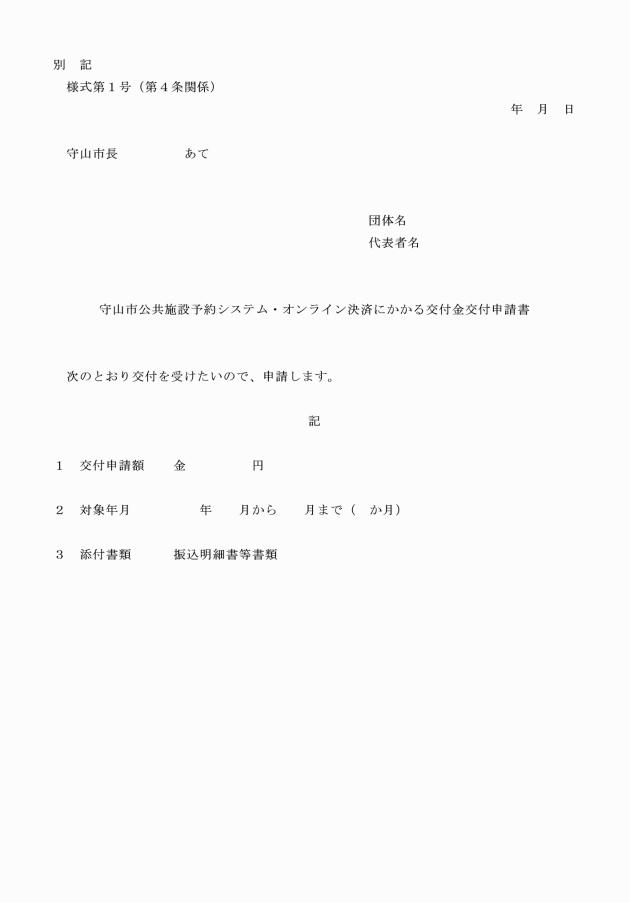 ○守山市公共施設予約システム・オンライン決済にかかる交付金交付要綱